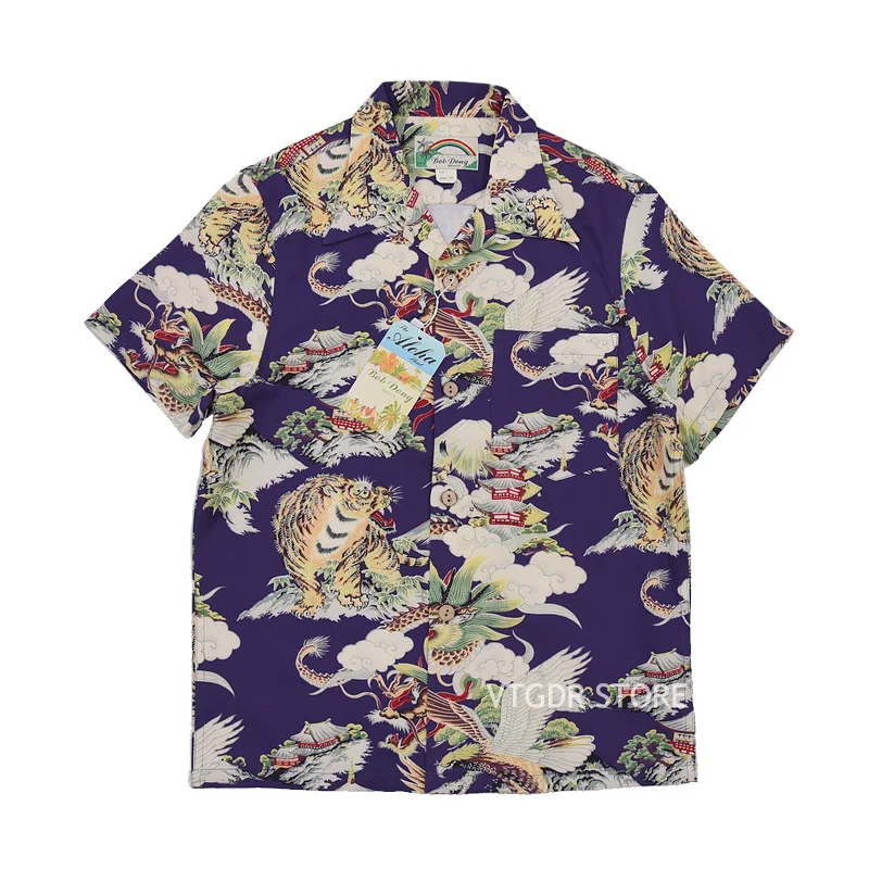 Мужская винтажная гавайская рубашка Dong, темно-синяя гавайская рубашка с цветочным рисунком, с изображением дракона, тигра, орла, Гавайского Пляжа, круиза, Луау, лето