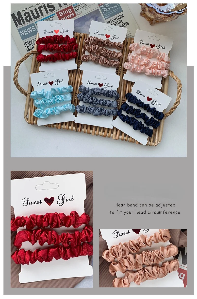 Резинка для волос однотонная женская, шелковая эластичная заколка для хвоста, модные аксессуары для волос, 3 шт.компл.