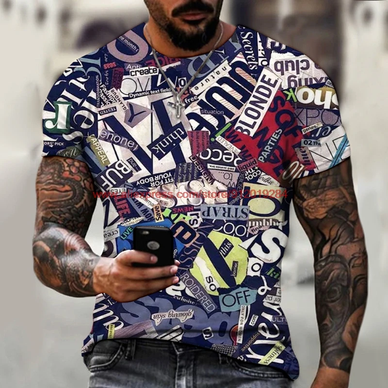 Мужская футболка с принтом в виде американского граффити, модная повседневная Ретро футболка с круглым вырезом и короткими рукавами, размера плюс Top
