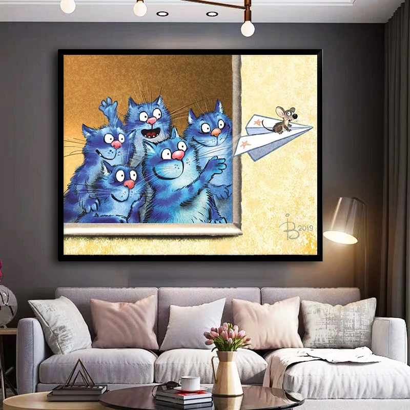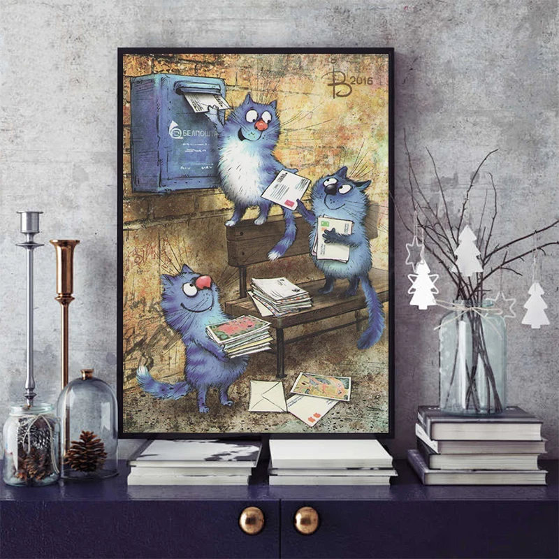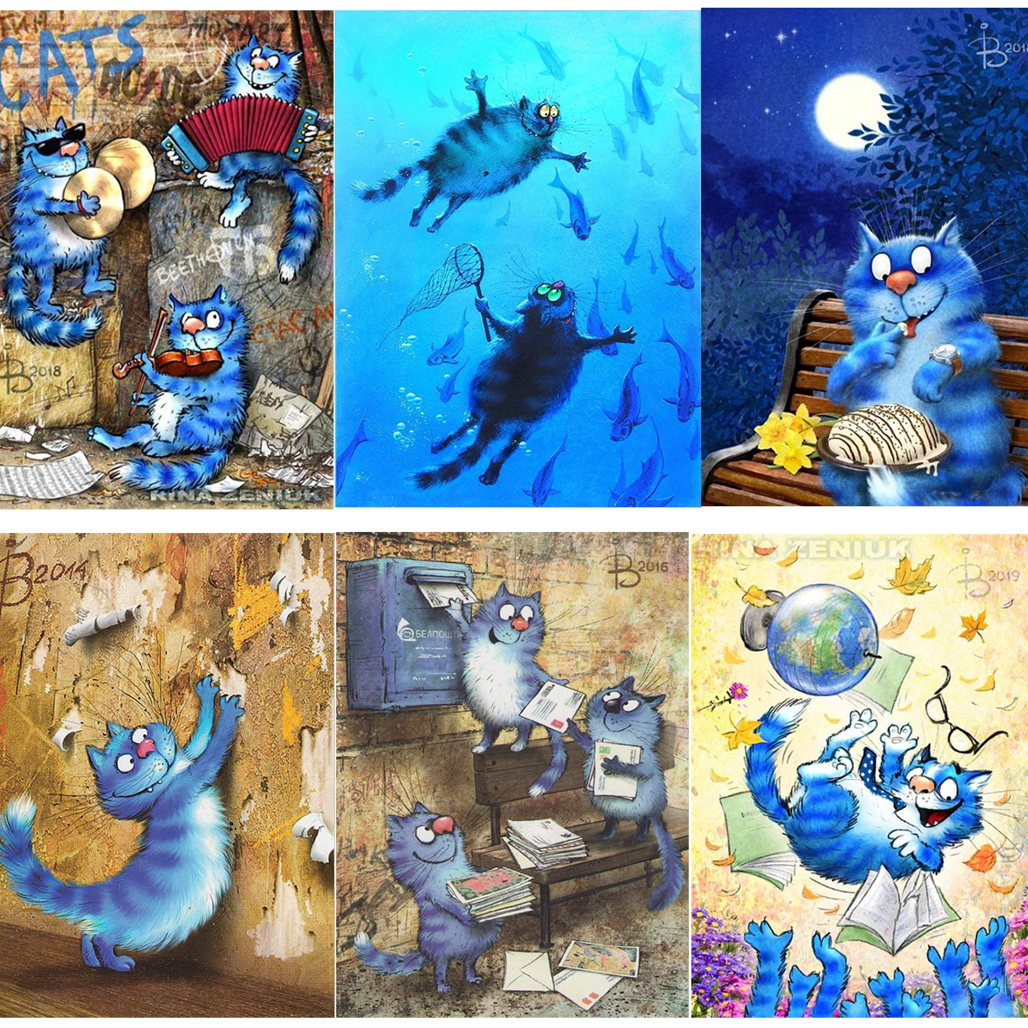Рисование по номерам на холсте с изображением синей кошки, 40 х60