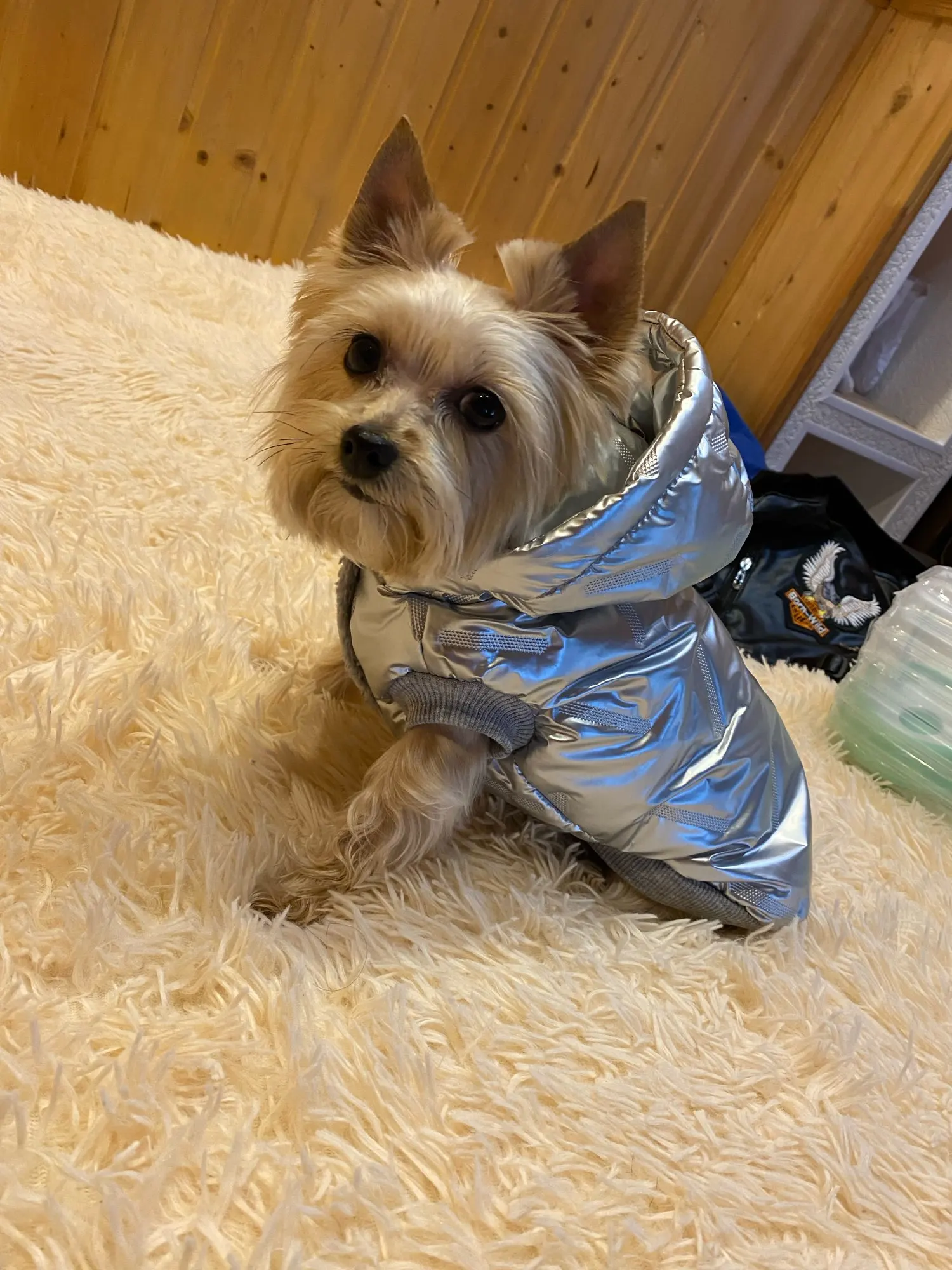 Замечательный комбез ,на йоркширского терьера мини весом 2 кг ,размер М подошёл идеально. Качество очень хорошее.
