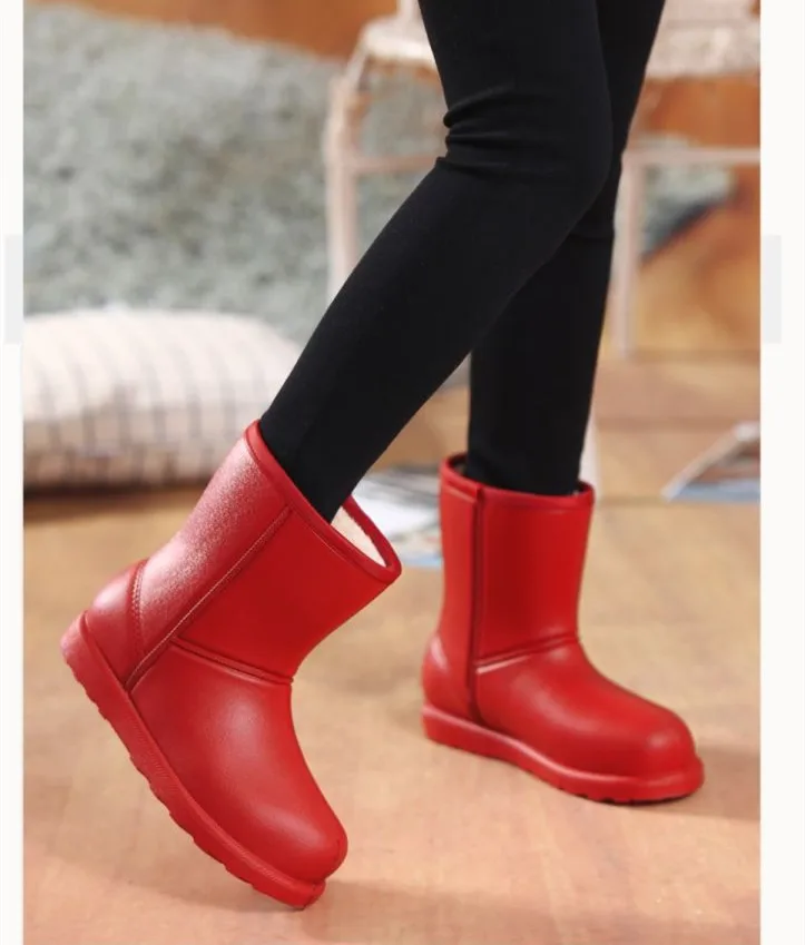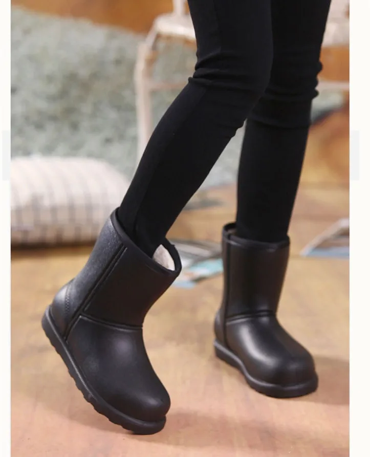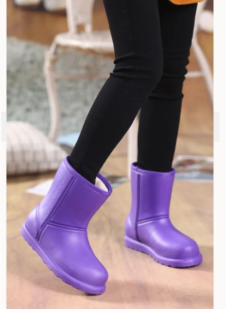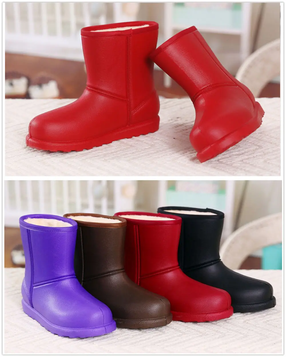 Зимние плюшевые женские нескользящие теплые водонепроницаемые сапоги для дождя, студенческие корейские Сапоги из ЭВА, Рабочая обувь для кухни и стирки, 36-41
