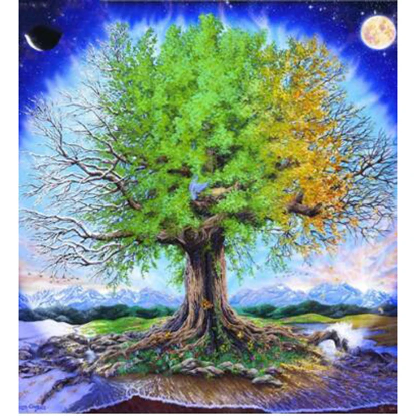 Алмазная живопись 5D сделай сам, квадратнаякруглая алмазная живопись с пейзажем, зеленое большое дерево, красивая картина с пейзажем, вышивка крестиком, подарок FH157