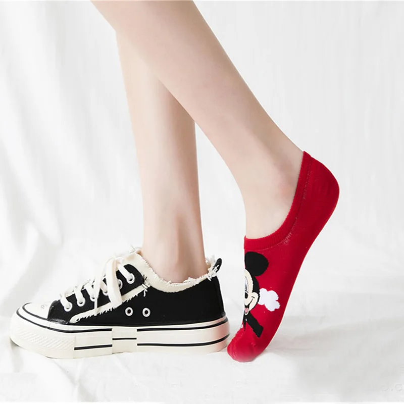 Носки женские хлопковые, невидимые, с изображением медведя и мыши, ...