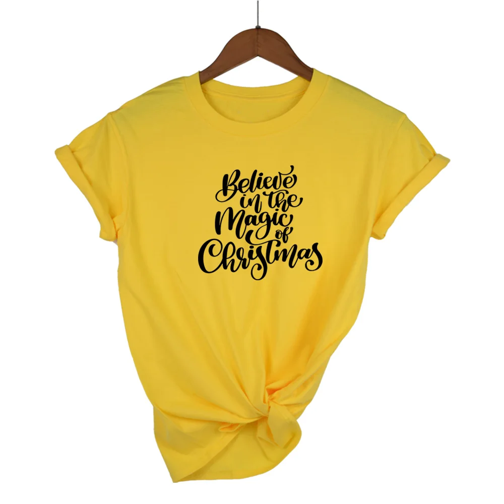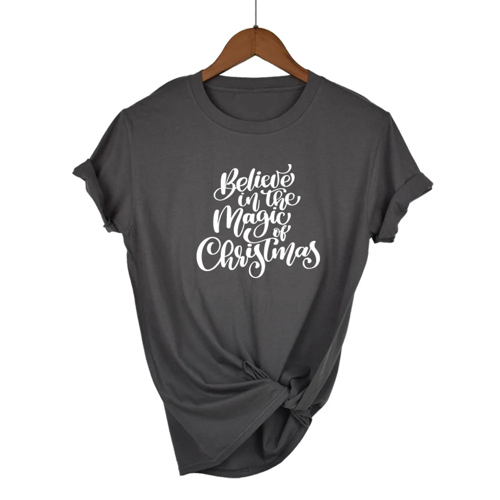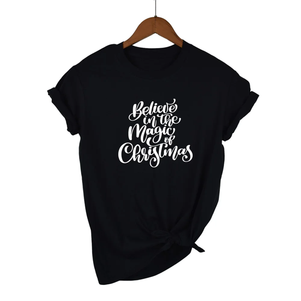 Верьте в волшебство Рождества, футболка, Рождественская Праздничная Женская одежда, модные унисекс тренировочные футболки с оленями, просто styleбели