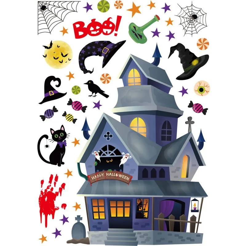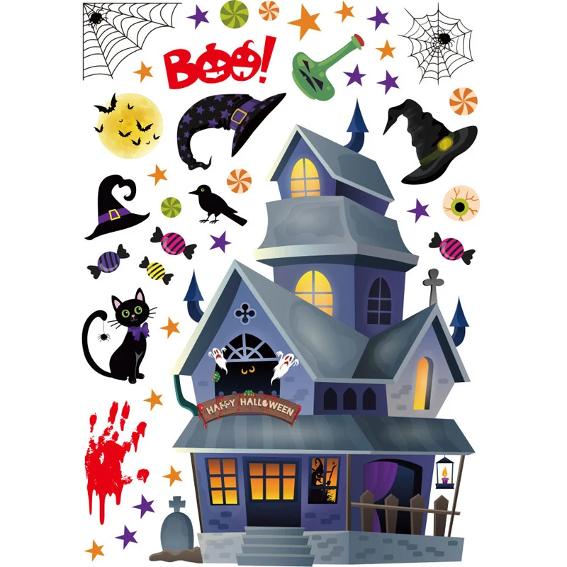 Ужасные наклейки на Хэллоуин, ручной принт, наклейки на окна, замок...