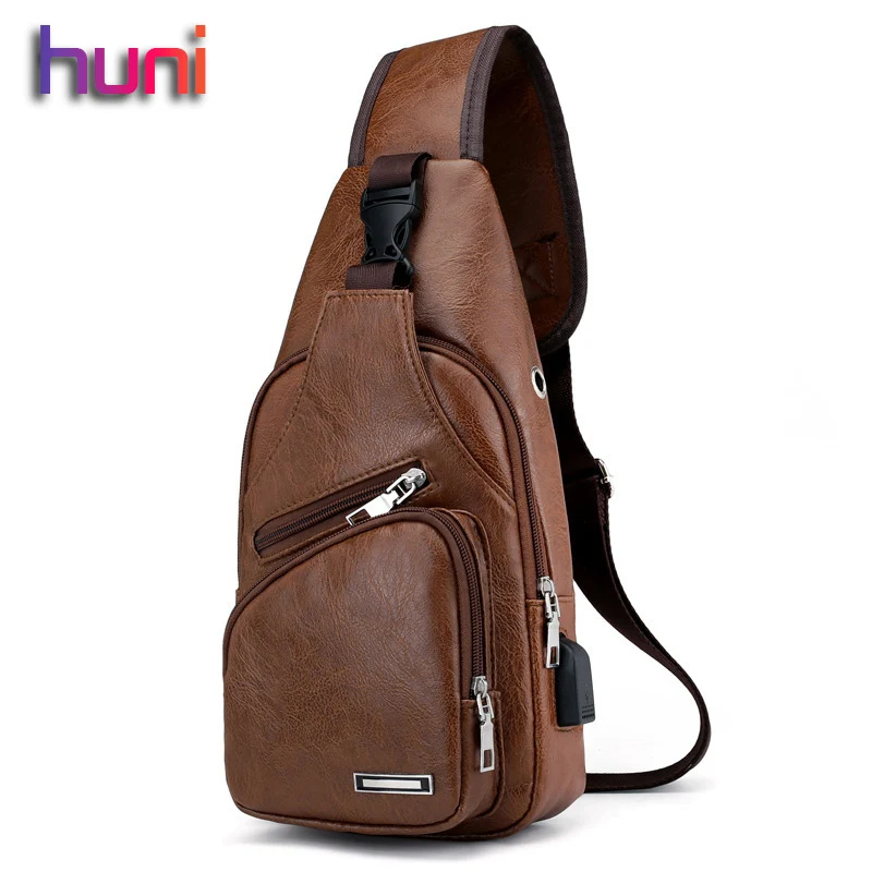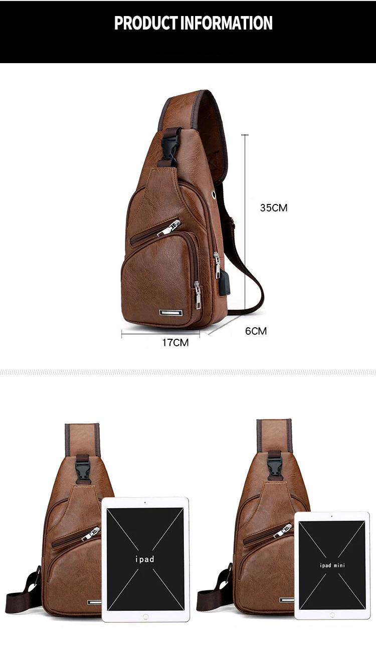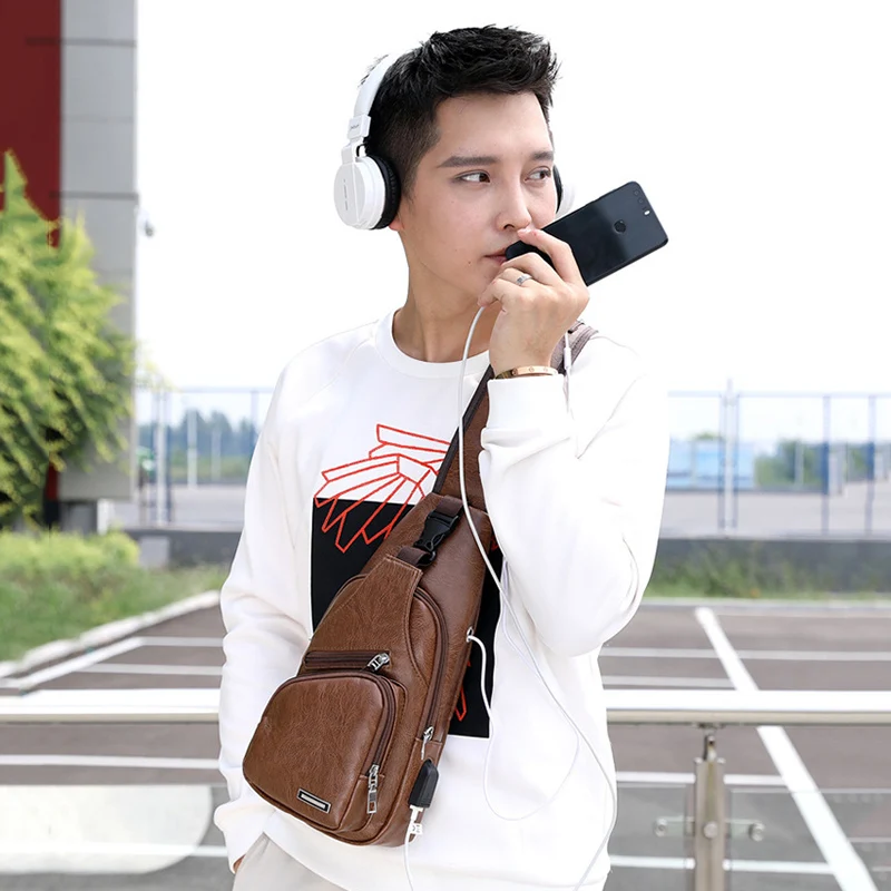 Мужская сумка через плечо с USB-зарядкой и защитой от кражи