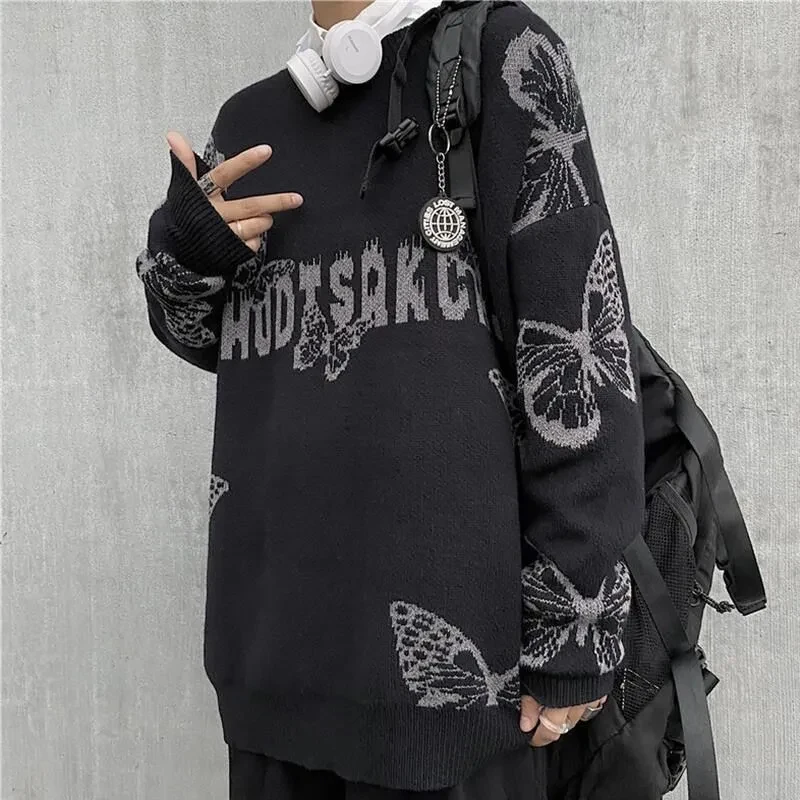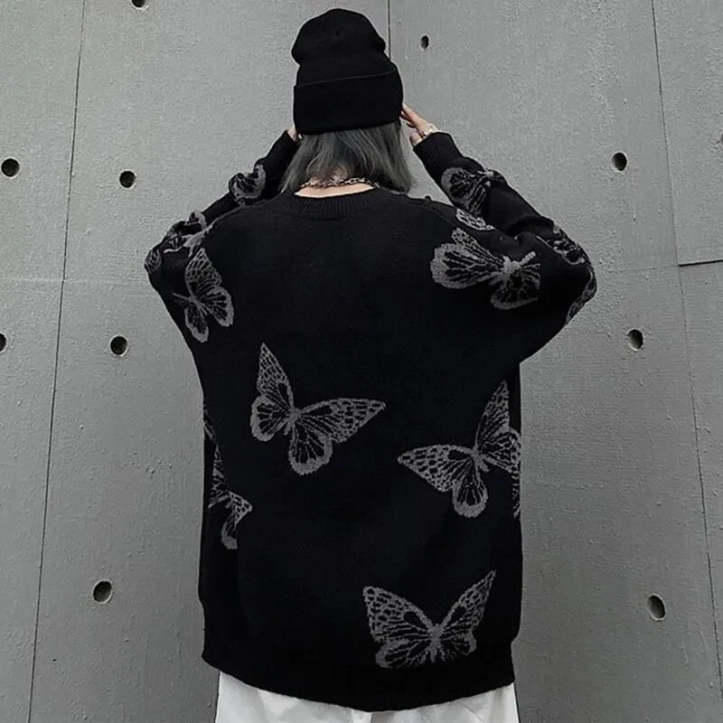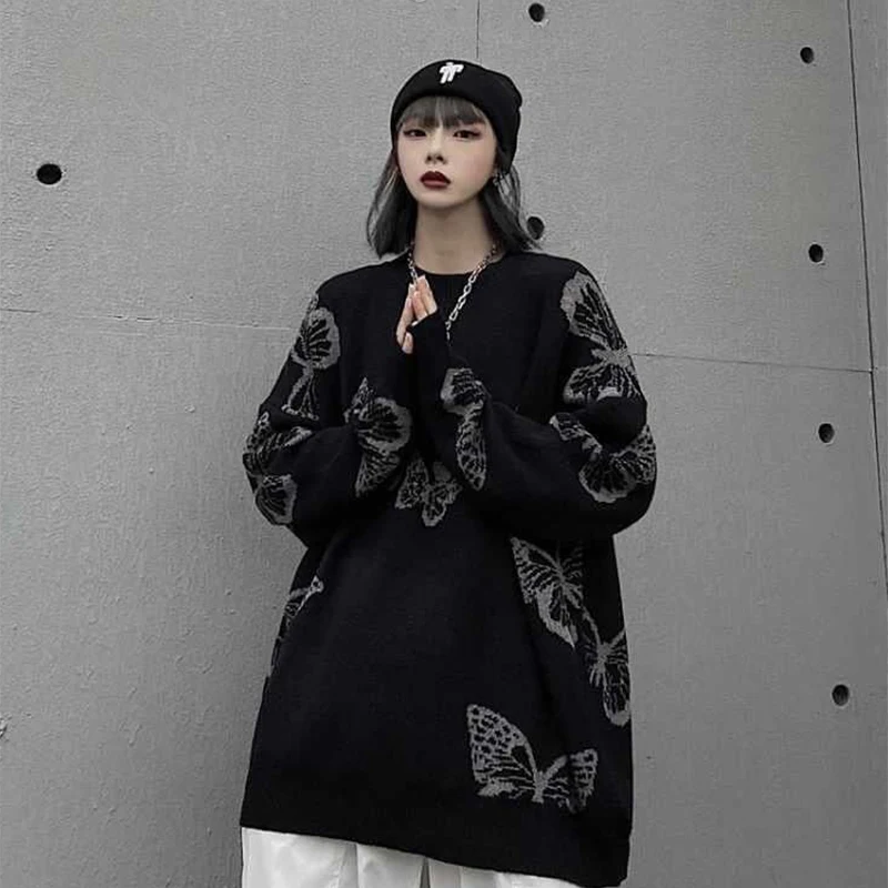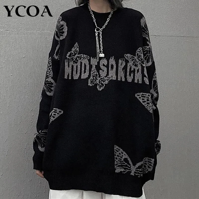 Свитер оверсайз, женские пуловеры, винтажная уличная одежда в стиле хип-хоп, черные эстетичные топы с надписью, корейская мода, готическая одежда с длинным рукавом