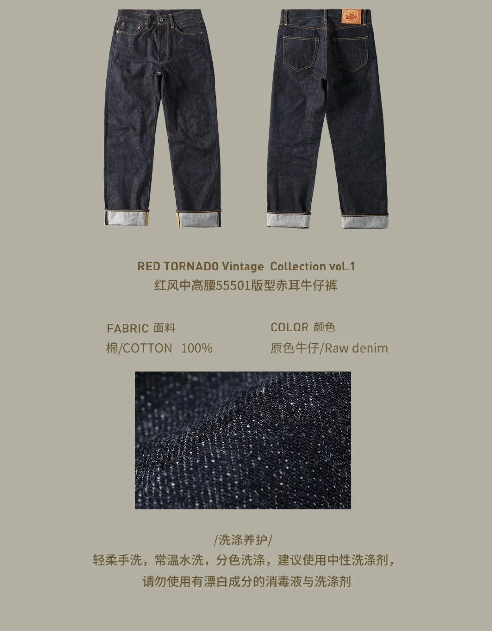 Описание! Невымытые джинсы Торнадо, красного цвета, индиго, 14 унций, 55501