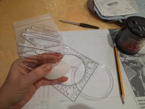 1,5 недели до МО почтой России, вещь классная но требует доработки: разобрала, вытащила круг и края щедро намазала свечкой (вспомните как раньше натирали лыжи зимой свечкой чтобы лучше ехали, здесь такой же принцип), затем собрала всё обратно, прокрутила по окружности и стало все намного лучше крутиться, а ну ещё зазубринки пилочкой подпилила (но думаю можно было и без этого), свечка прям супер помогла. Линейку взяла ребенку для школы- не любит циркуль, попробовал сказал что супер, ну посмотрим конечно, т.к. к любой вещи надо приспособиться) Карандаш должен быть тонким/острым! Мы хорошо наточили обычный карандаш, думаю что с механическим будет тоже хорошо. Круги можно рисовать от 1 до 4см.+ по корпусу линейки есть круги диаметром 4, 6, 8, 10, 12, 14, 16 и 18мм. Пластик хорошего качества, в общем мы довольны, рекомендую.