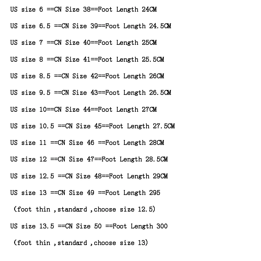 (Не реальный размер США) Просто выберите Китайский размер по нашему правилу. Размер обуви соответствует китайскому размеру или длине стопы.
