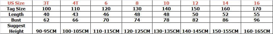 Американский размер3T4Т6810121416Размер бирки100110120130140150160170Длина4043464848505255Бюст6266707478828696Рекомендуемый рост90-95 см100-105 см110-115 см120-125 см130-135 см140-145 см150-155 см160-165 см
