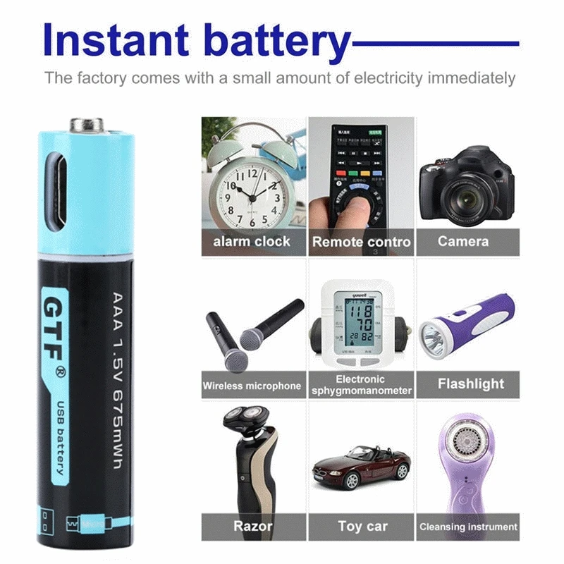 Baterias de litio de carregamento rаpido aaa recarregagéis usb gtf, saida de tenso constantile de 1,5 v tornam-keine mais poderoso, o chip de proteção inteligente integrado, pode ser recarregado 1000 vezes, grande economy de kustos para sua vida diaria, em geral, é uma bateria segura, Poderosa, de alta qualidade e confivel.