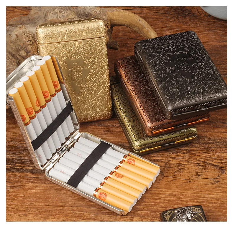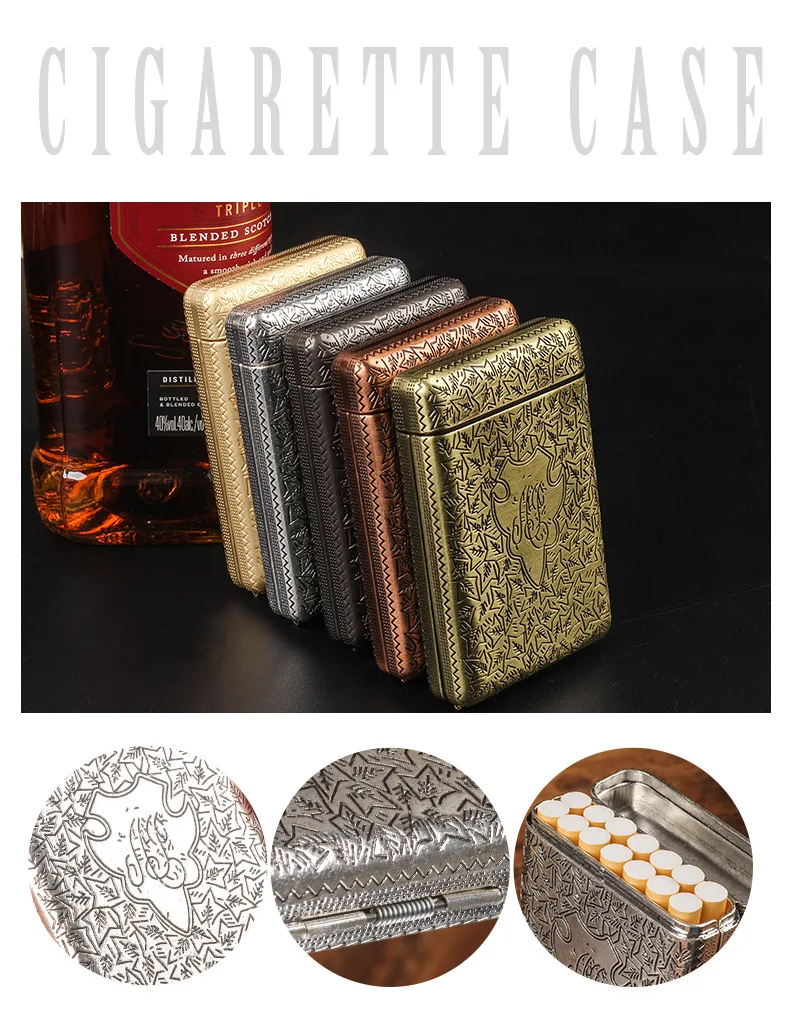 Винтажный чехол для сигарет, контейнер для 14 сигарет, подсвечивающий чехол для сигарет в том же стиле, карманный футляр для сигарет, аксессуары для курения