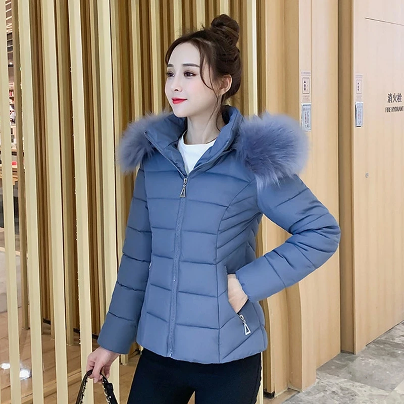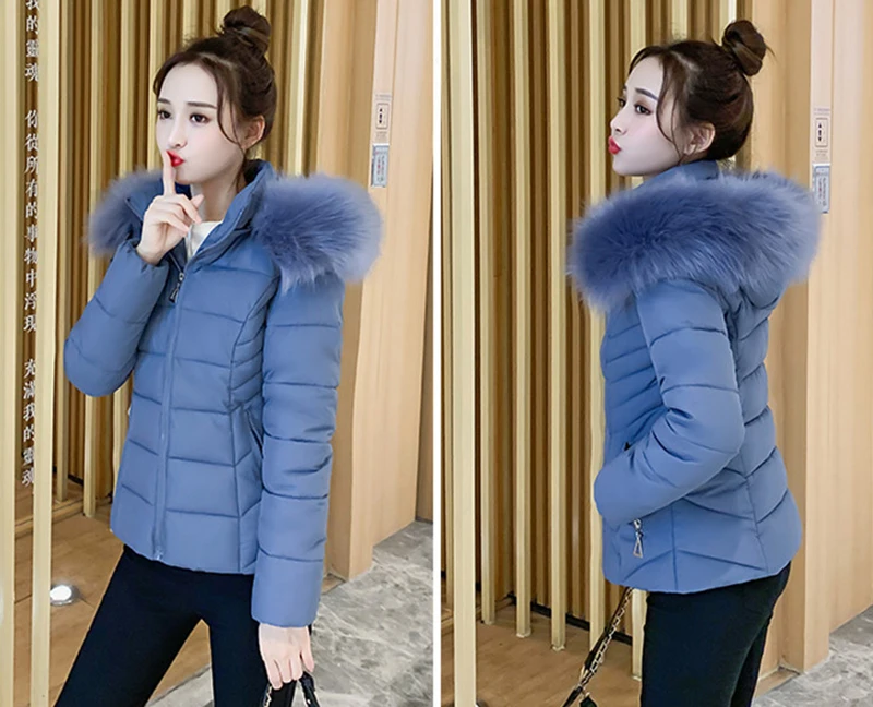Однотонная женская куртка с капюшоном и меховым воротником, женская зимняя парка, облегающее Короткое женское пальто, Толстая Женская куртка, пальто для дам