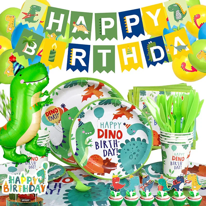 Динозавр день рождения поставки скатерть с днем рождения бумаги Гирлянда баннер торт Топпер воздушный шар Висячие вихревые Дино Декор