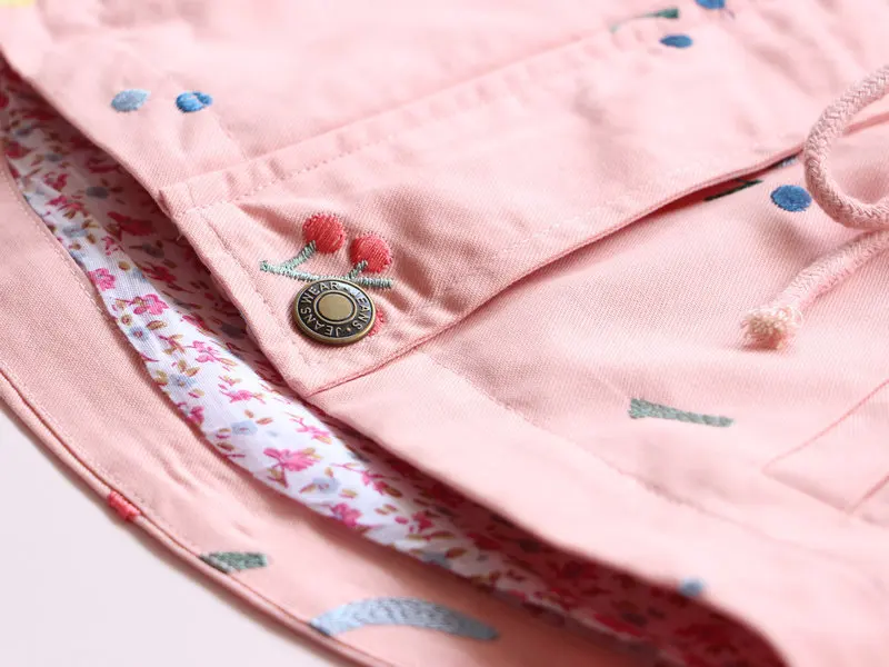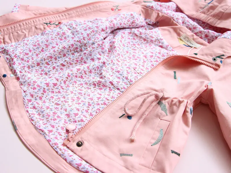 Ветровка демисезонная для девочек, с капюшоном и цветочной вышивкой