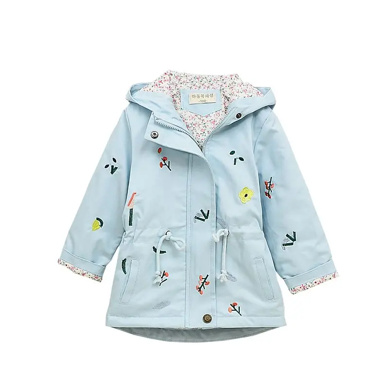 Демисезонное пальто для девочек 2021, ветровка с цветочной вышивкой...