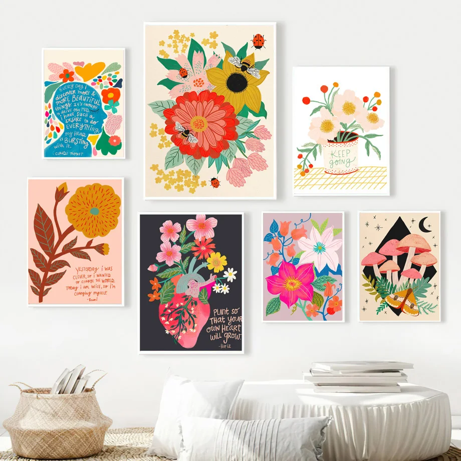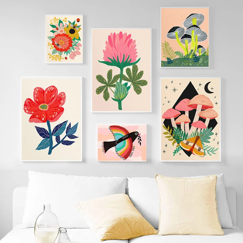 Настенная картина с изображением цветов птицы грибов Monet, скандинавские постеры и принты для украшения гостиной