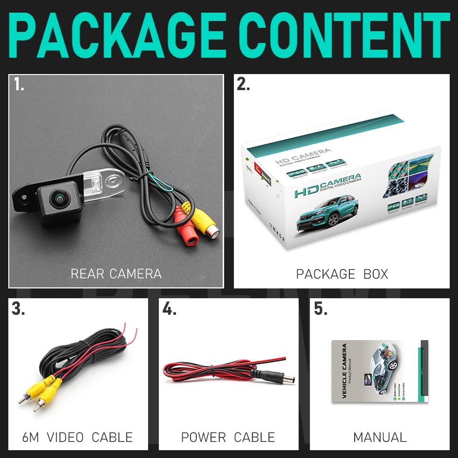 1. Задняя камера2. Коробка для посылка3. Видео кабель (6 м)4. Кабель питания5. Руководство пользователя