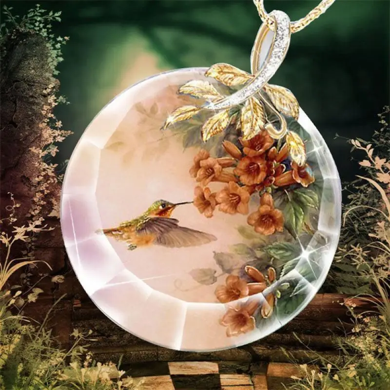 Женское круглое ожерелье Колибри, роскошное колье с розовыми пионами, Ювелирное Украшение на Хэллоуин