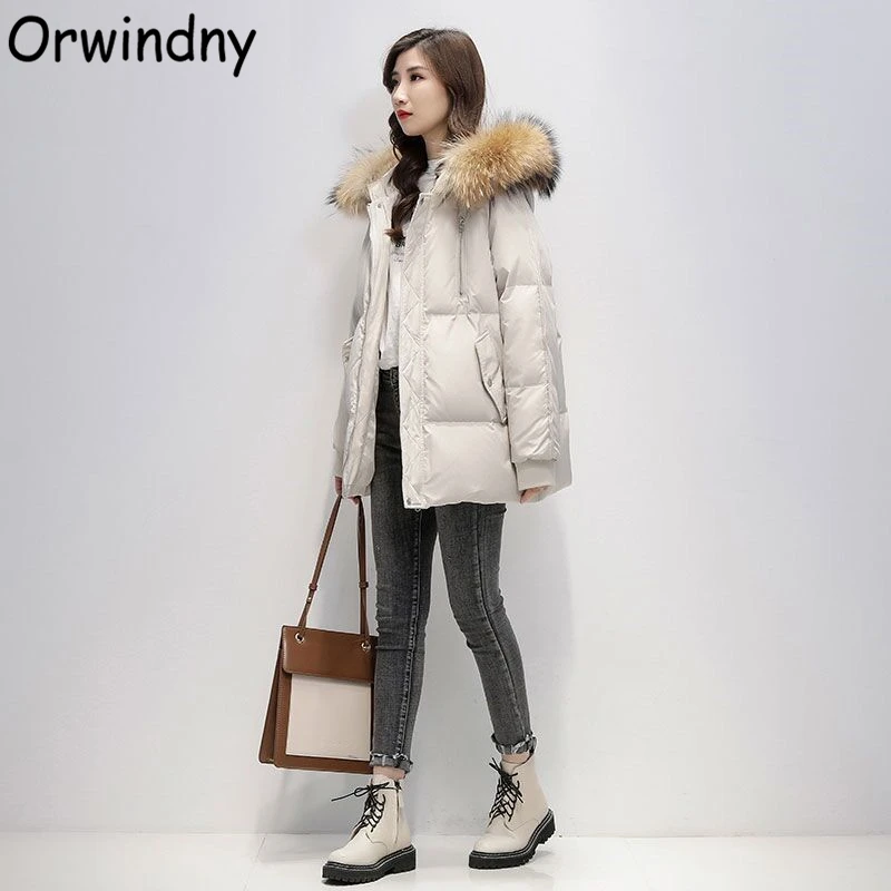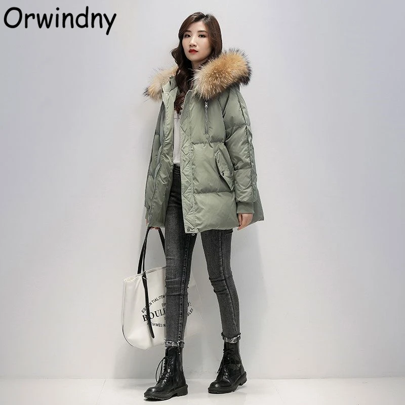 Зимнее пальто Orwindny, женские Большие меховые утепленные парки, большие размеры, модные женские куртки на молнии, женская зимняя одежда, однотонная одежда