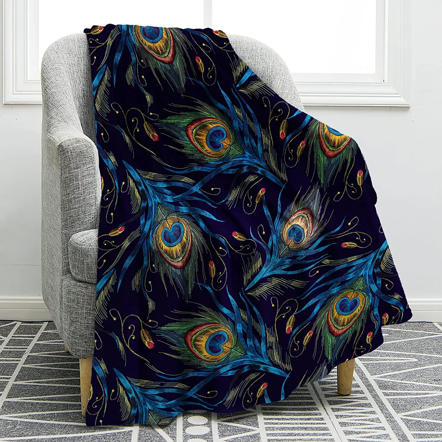 Одеяло женское с павлиньими перьями, легкий мягкий уютный плед с теплым принтом, для девушек и женщин, подарочное покрывало для кровати