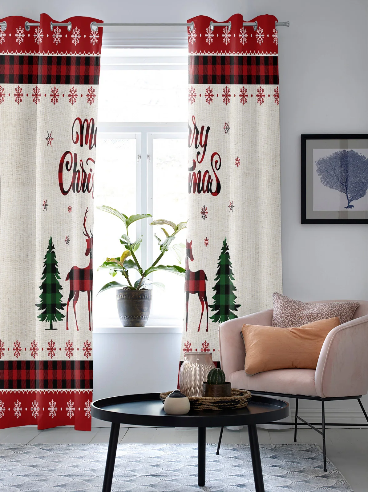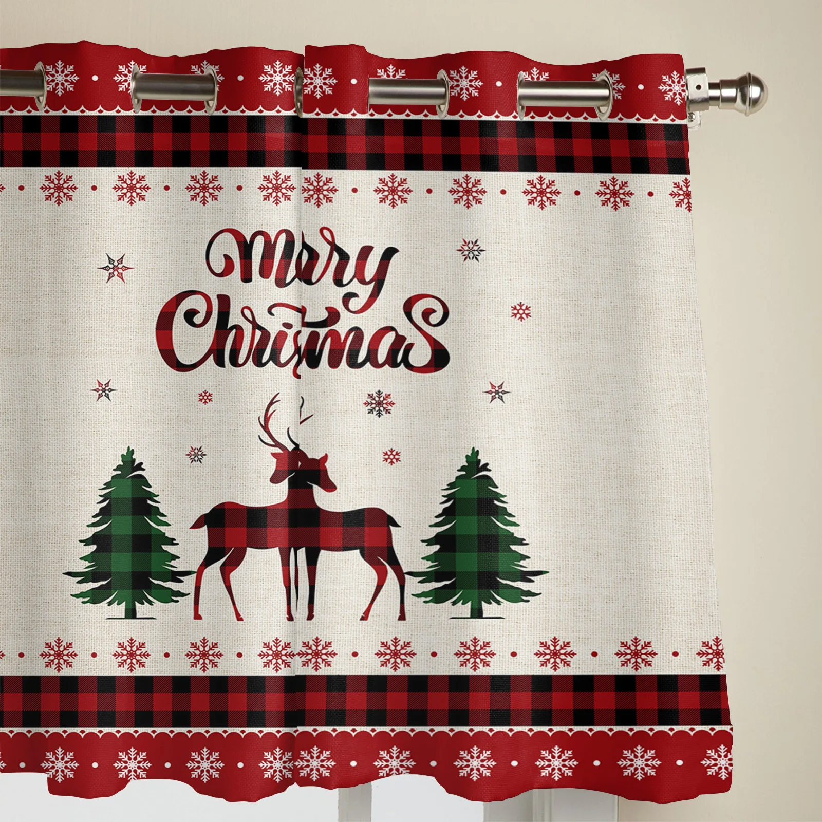 Рождественские занавески в красную клетку, снежинки, лось, занавески для гостиной, занавески для гостиной, набор штор для спальни