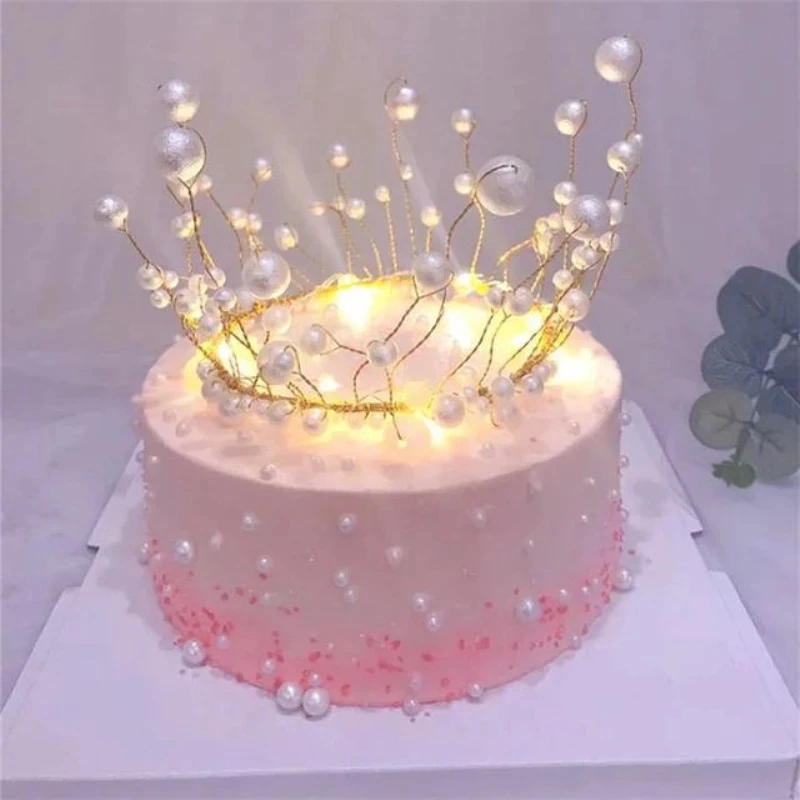 Металлический жемчуг Принцесса Корона торт Топпер искусственный жемчуг головной убор свадебный торт украшение детский душ день рождения Топпер ручной работы