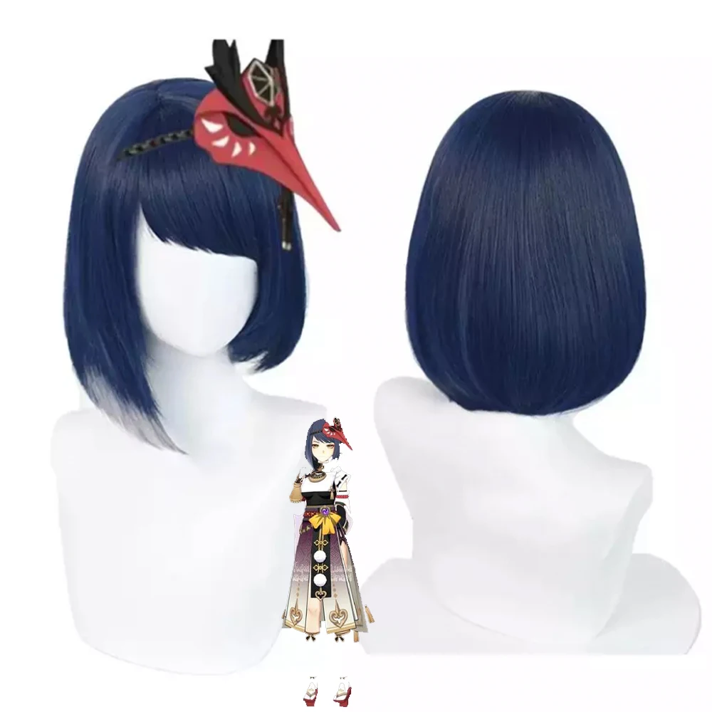 Парик для косплея Kujyo Sara Genshin Impact, короткий, темно-синий,...