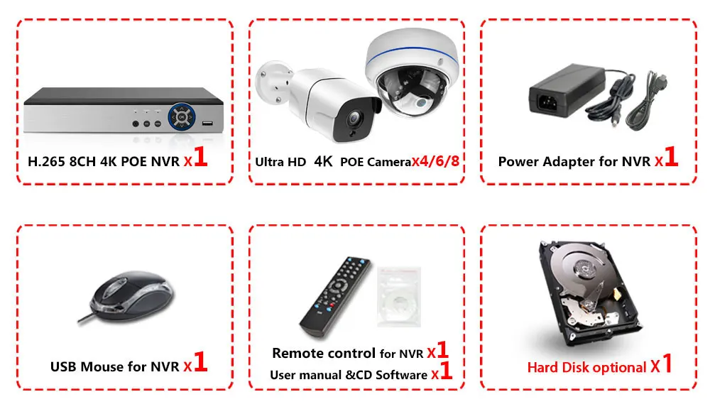 4/6/8 x HD POE IP 4K Крытый Открытый ИК дневное ночное видение Пуля Всепогодные камеры;