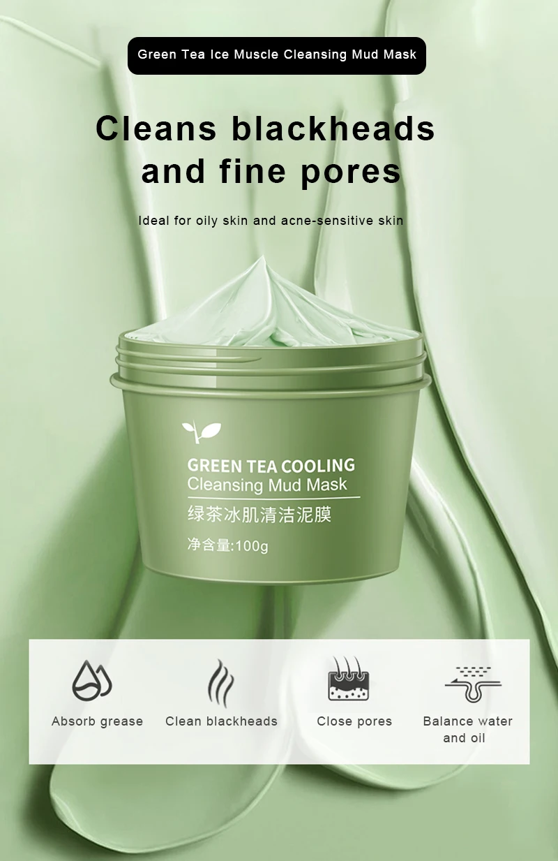 Маска для мышечной грязи с зеленым чаем, глубокое очищение, удалени...