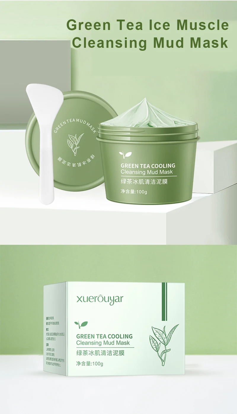 Xuerouya ледяная маска для мышечного очищения зеленого чая, грязь, глубокое очищение, подтягивание пор, увлажнение, фруктовая кислота, грязевая маска