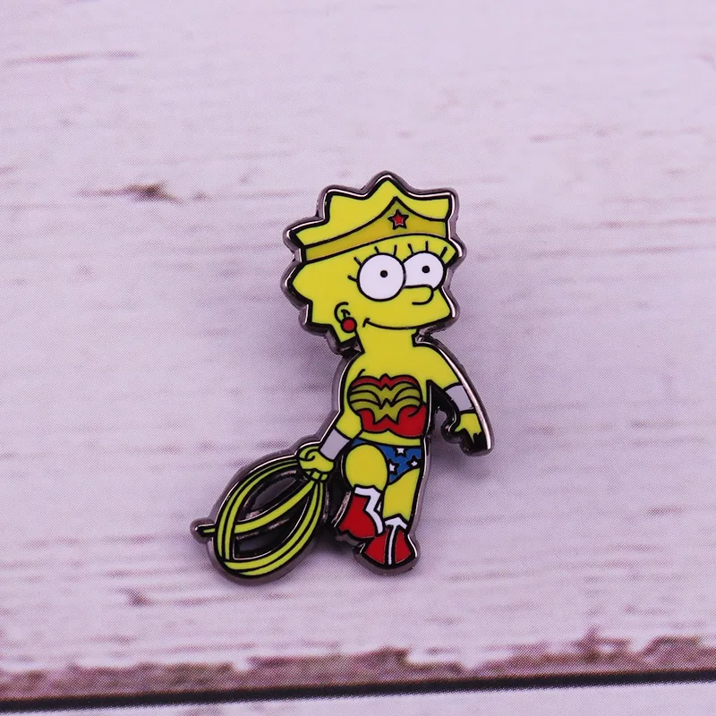 Забавные эмалированные булавки в стиле аниме с героями мультфильмов, Симпатичные броши в стиле Симпсона Суперженщины, модная Металлическая Булавка, значок, аксессуары для рюкзака, ювелирные изделия 2021