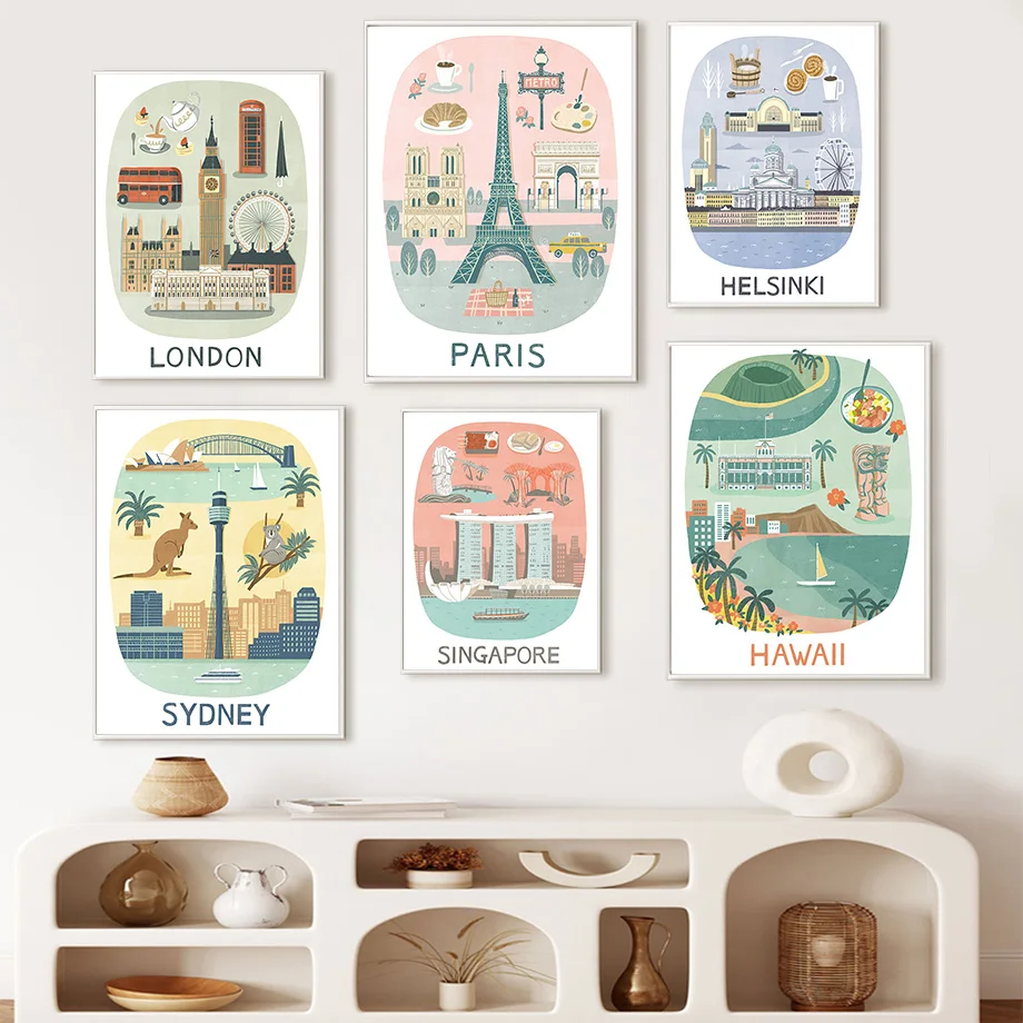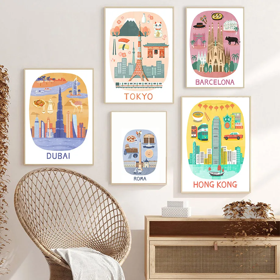 Настенная картина с изображением Парижа, Барселоны, Ливерпуля, Нью-...