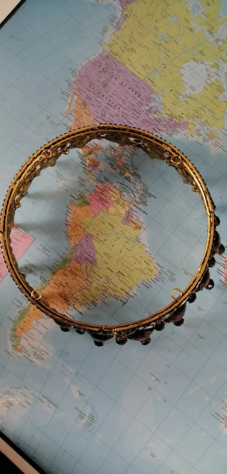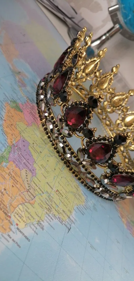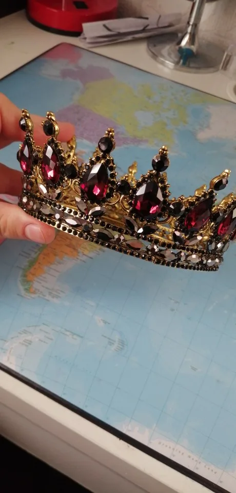 The packaging is really solid. The crown was well protected. It came very quickly. It's really beautiful but the gems are dark purplish-pinkish but not red. There are some little imperfections but that's fine. It's a little smaller than I thought but that's only my fault.