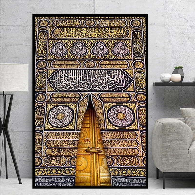 Мусульманская настенная живопись для дверей, холст, Каба, мусульманский Аллах, золотой плакат и принты для гостиной, украшения для дома, настенные картины