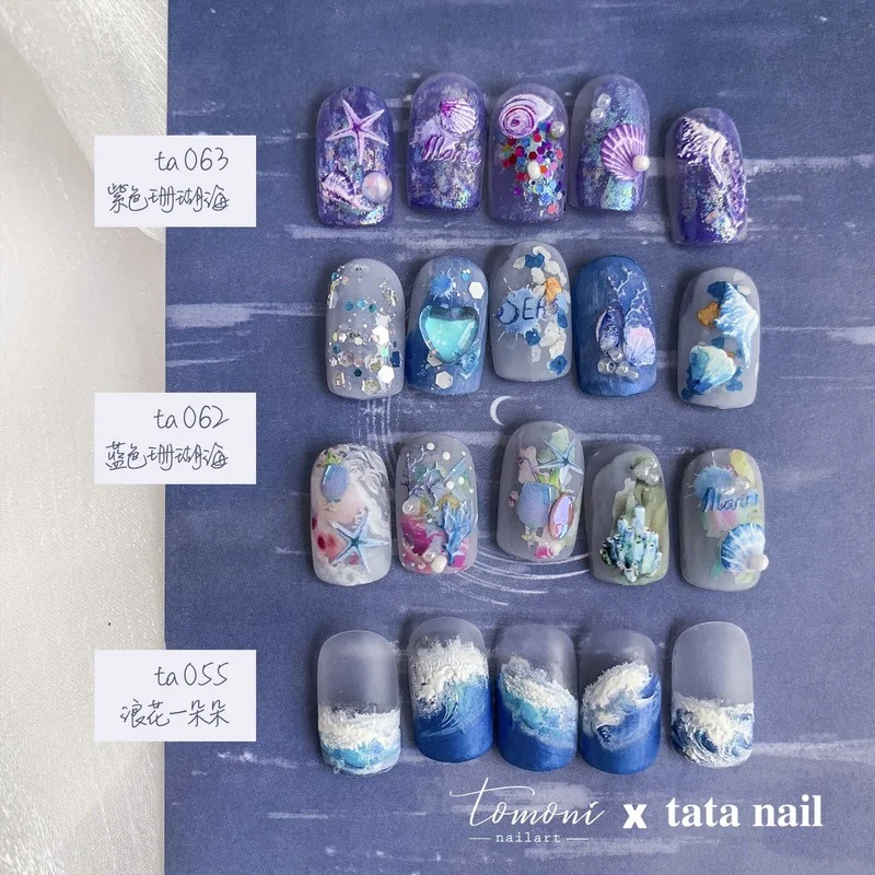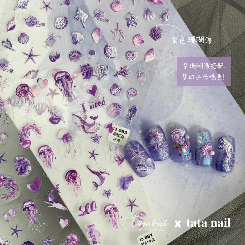 2021 японские 5D рельефные гравированные наклейки для ногтей синие фиолетовые цвета Ракушки Морская звезда пляжная фотография