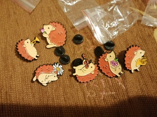 Симпатичные ёжики. Качественный товар. Заказывала две брошки. Одну из них мне прислали не ту, которую заказывала. Оценку за это снижать не буду.