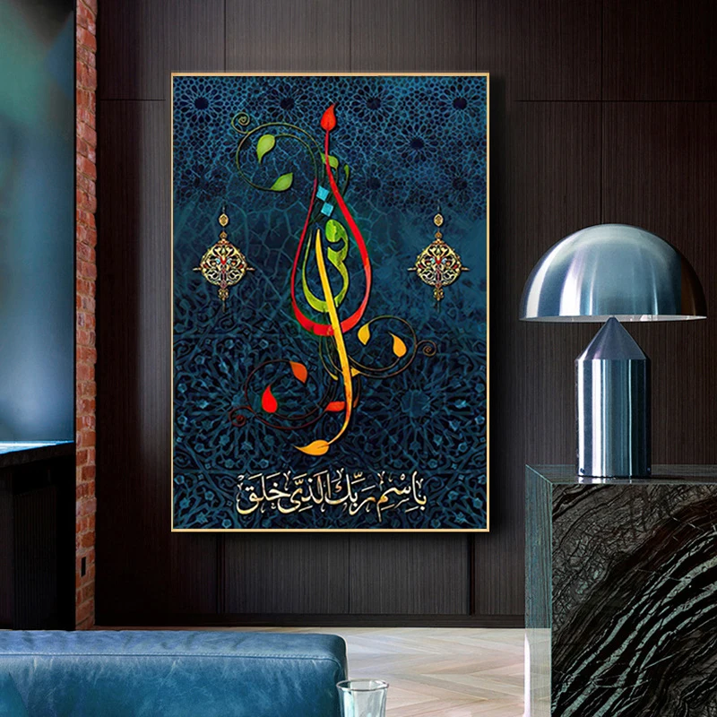 Мусульманское исламское искусство арабская каллиграфия окрашенная Картина на холсте исламский плакат и принты настенное Искусство гостиная украшение для дома