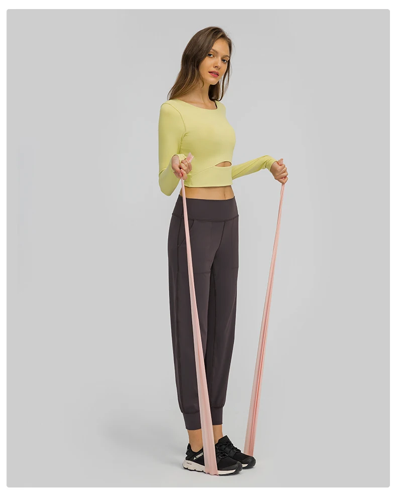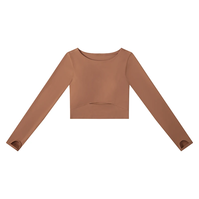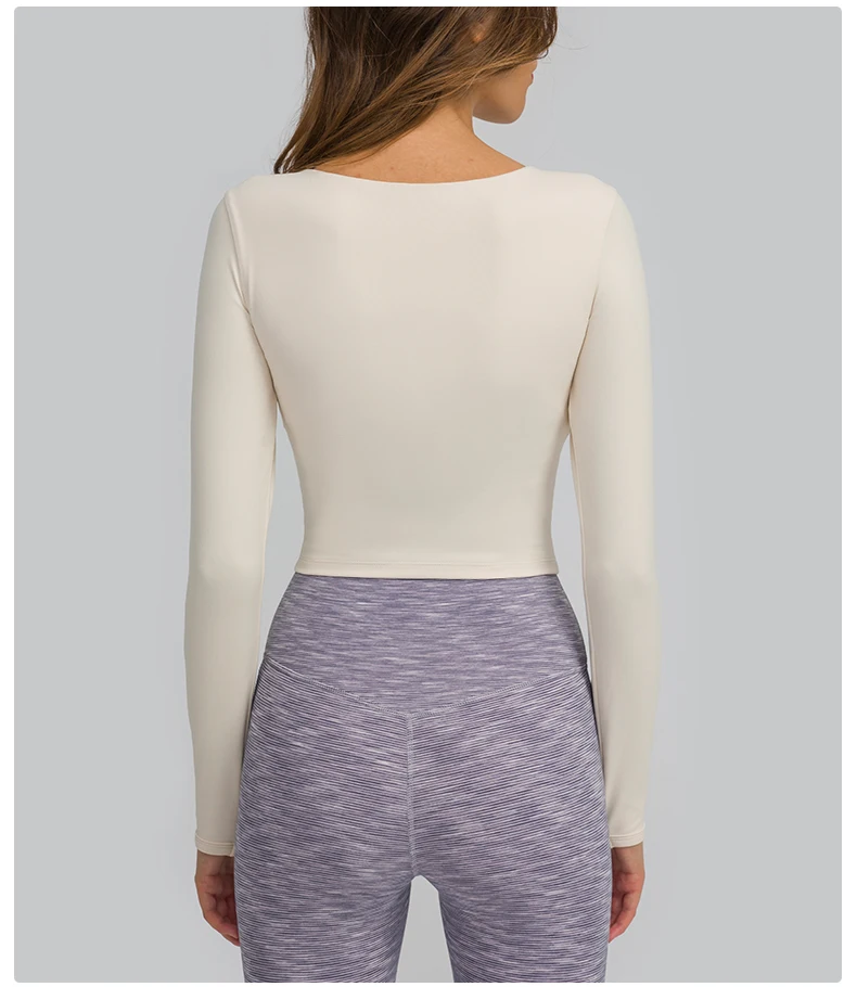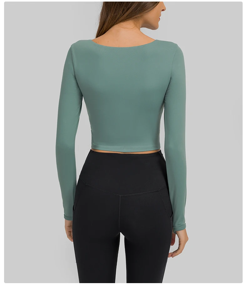 Футболка женская с длинным рукавом и глубоким вырезом, нейлоновый укороченный топ для занятий йогой, фитнесом, пуловер для воркаута с дырками для большого пальца
