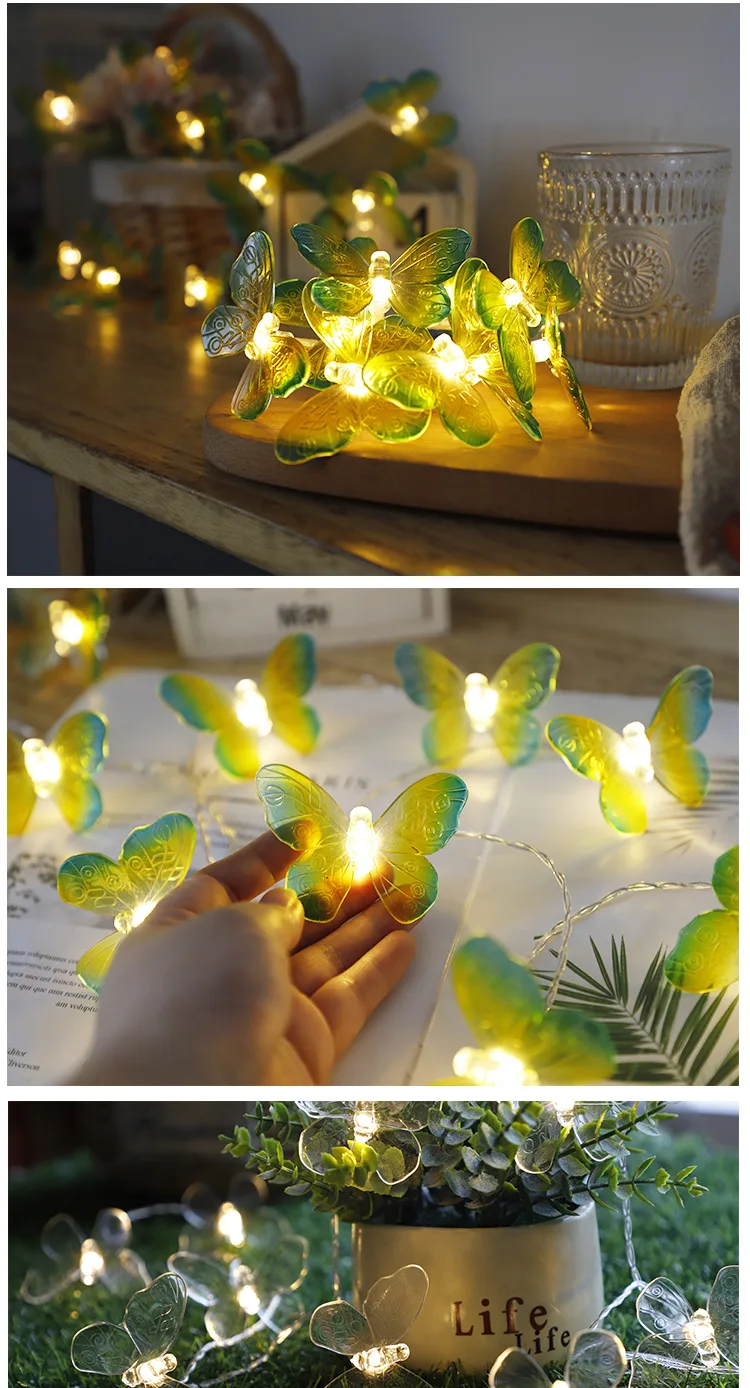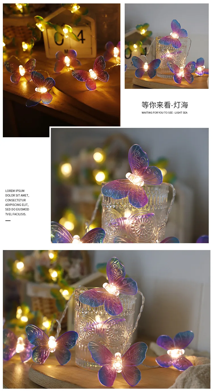 СВЕТОДИОДНАЯ Гирлянда-бабочка, креативный шнурок на батарейках, фиолетовая лампа-бабочка, праздничный декоративный шнурок для дома Вечерние