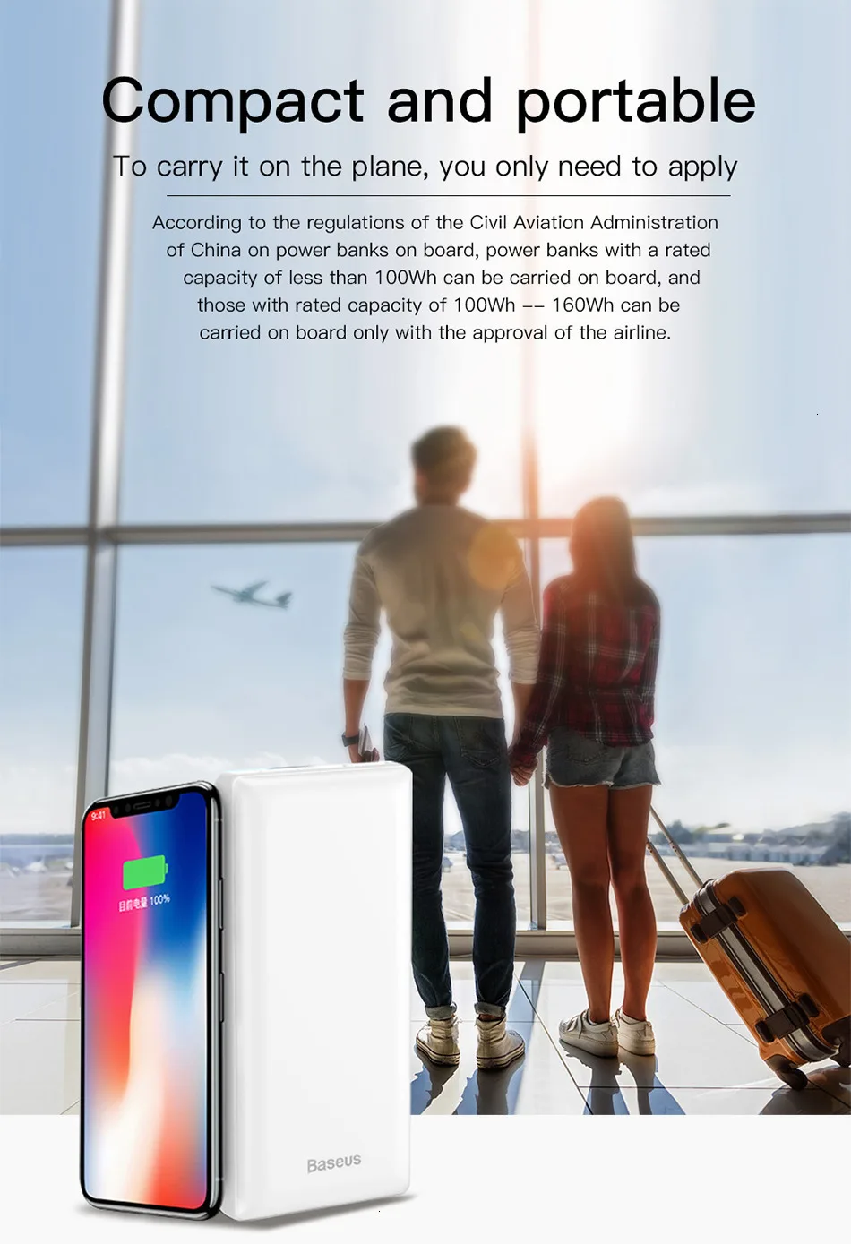 Внешний аккумулятор Baseus на 30000 мА ч с портом USB Type-C и поддержкой быстрой зарядки