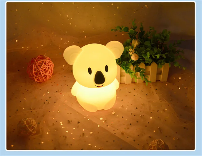Koala Ночной светильник, силиконовый цветной светильник, меняющий цвет, Usb светильник, декоративная лампа, RGB Диммируемый таймер, настольная лампа для детей, подарок для ребенка