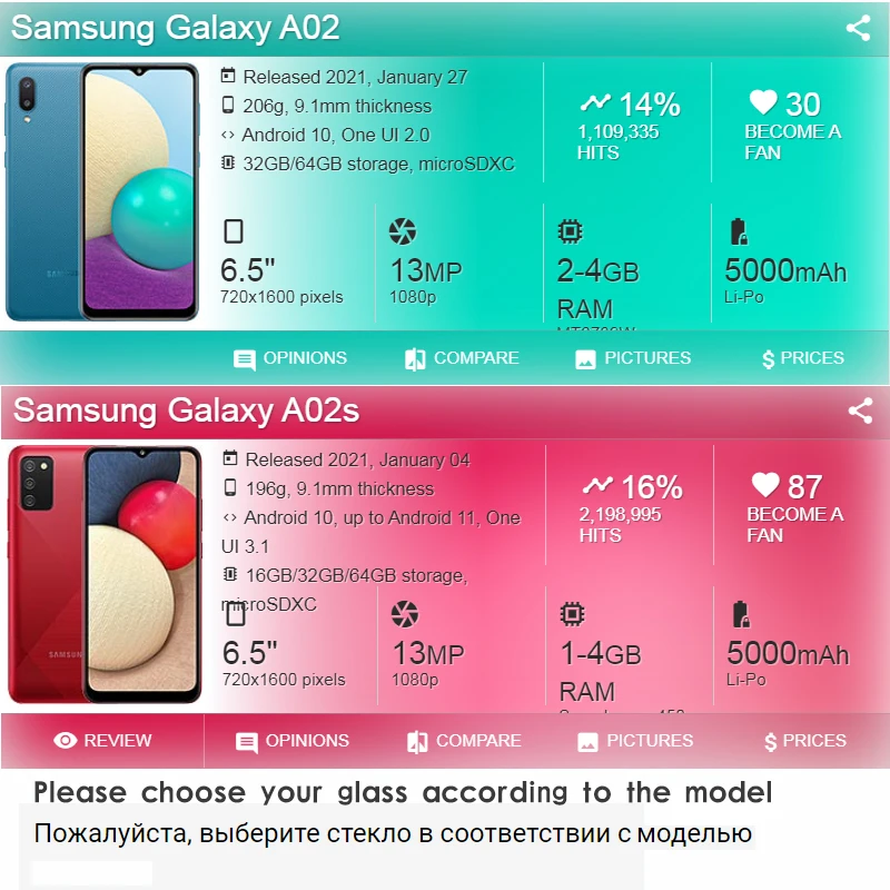 Защитное стекло для Samsung Galaxy A02, закаленное, 2 шт.