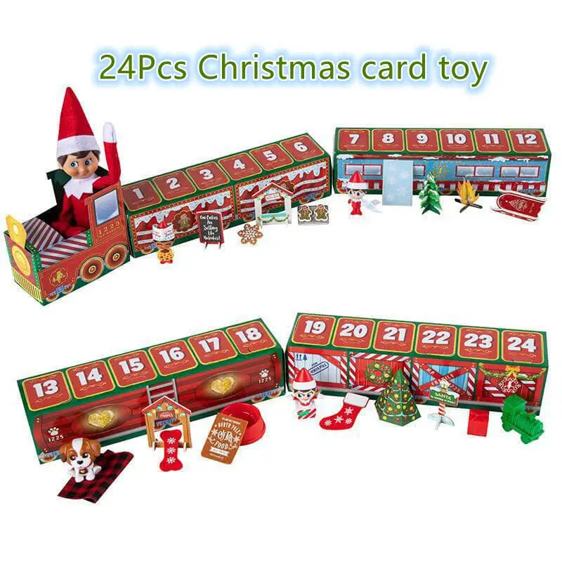24 дня обратного отсчета, 1 набор, рождественские украшения, подарки для детей, мультяшный Рождественский эльф, бумажные игрушки для поездов