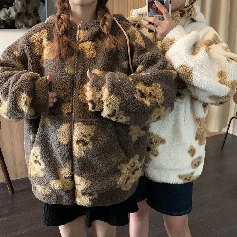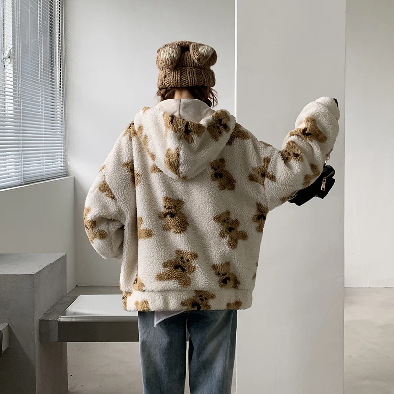 Толстовки с изображением мишки тедди, пуловеры, Свободные повседневные универсальные толстовки в стиле Харадзюку, Мужское пальто оверсайз с длинным рукавом и искусственным рисунком