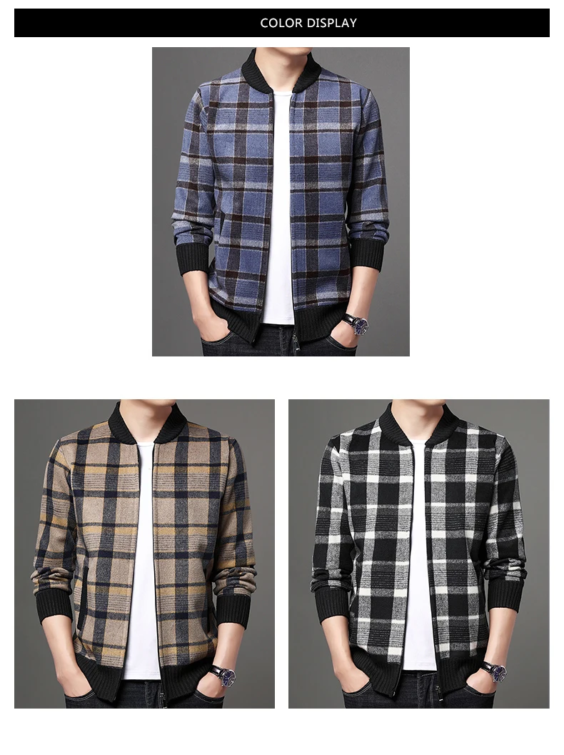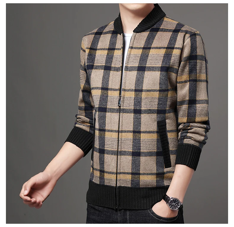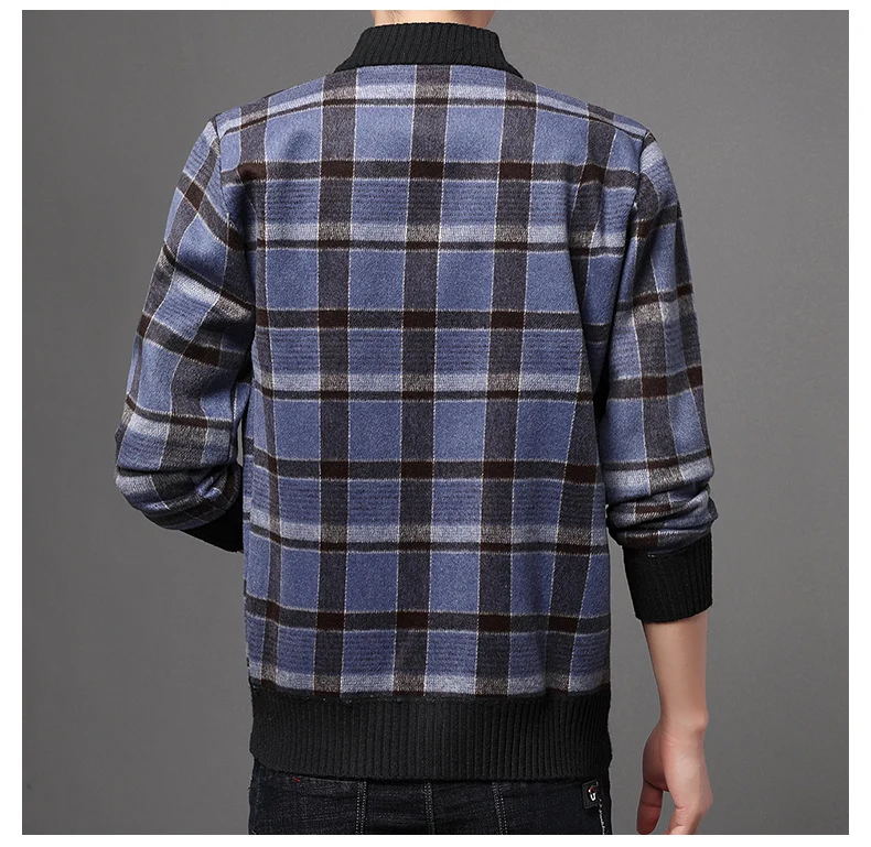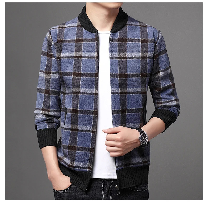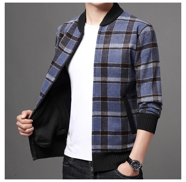 Мужская шерстяная куртка-бомбер в клетку, теплая бейсбольная куртка в Корейском стиле, Повседневная Верхняя одежда для осени и зимы, J711
