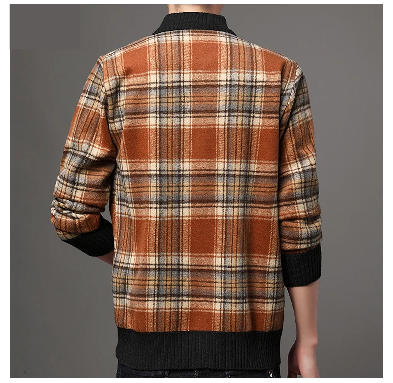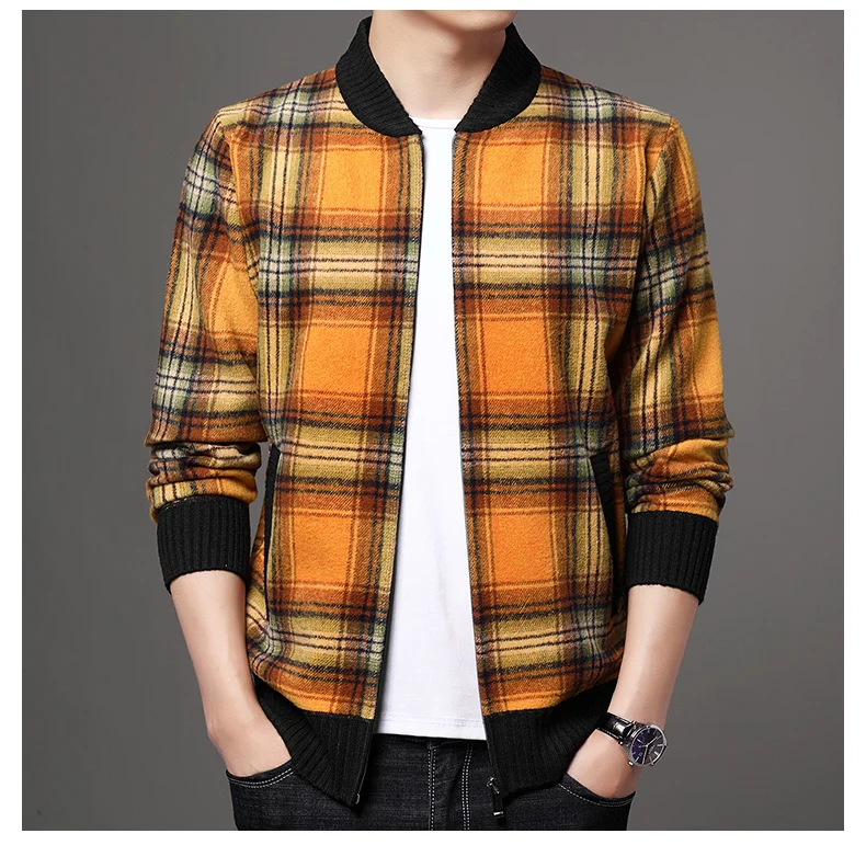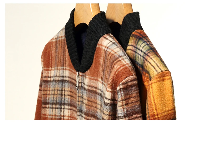 Мужская винтажная куртка-бомбер на молнии, теплая шерстяная бейсбольная куртка в клетку, Повседневная Верхняя одежда в Корейском стиле, J712