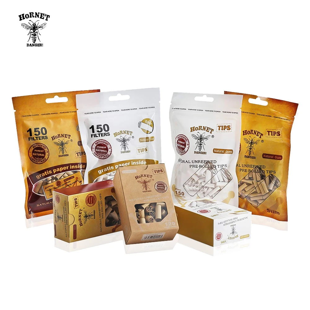 HORNET опасность 150 x натуральная жвачка 5 мм6 мм тонкая рулонная бумага, предварительно рулонная, неочищенная сигаретная рулонная бумага